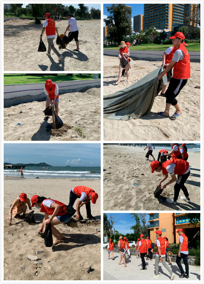 在兩天的團(tuán)建活動中,義工隊(duì)組織了一次海灘清理垃圾行動,對雙月灣的棧道、海面和沙灘上的垃圾進(jìn)行了清理。義工隊(duì)成員們用自己的雙手、汗水,以實(shí)際行動為自然環(huán)境出一份力,守護(hù)美麗的沙灘。